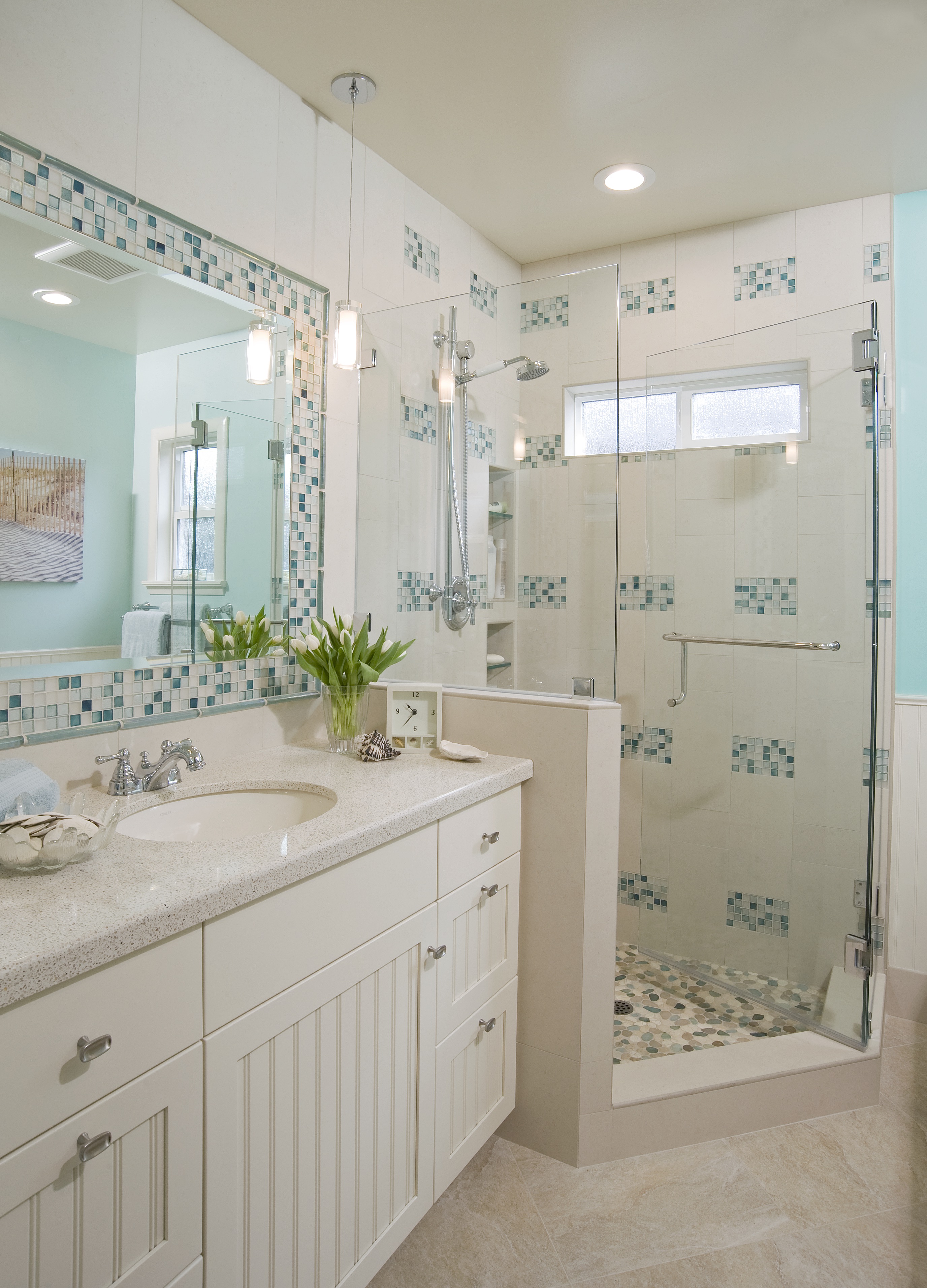 Shower wall Accent: Oceanside 7/8 Twilight Blend Adoration Clear Irid #000, Oxygen