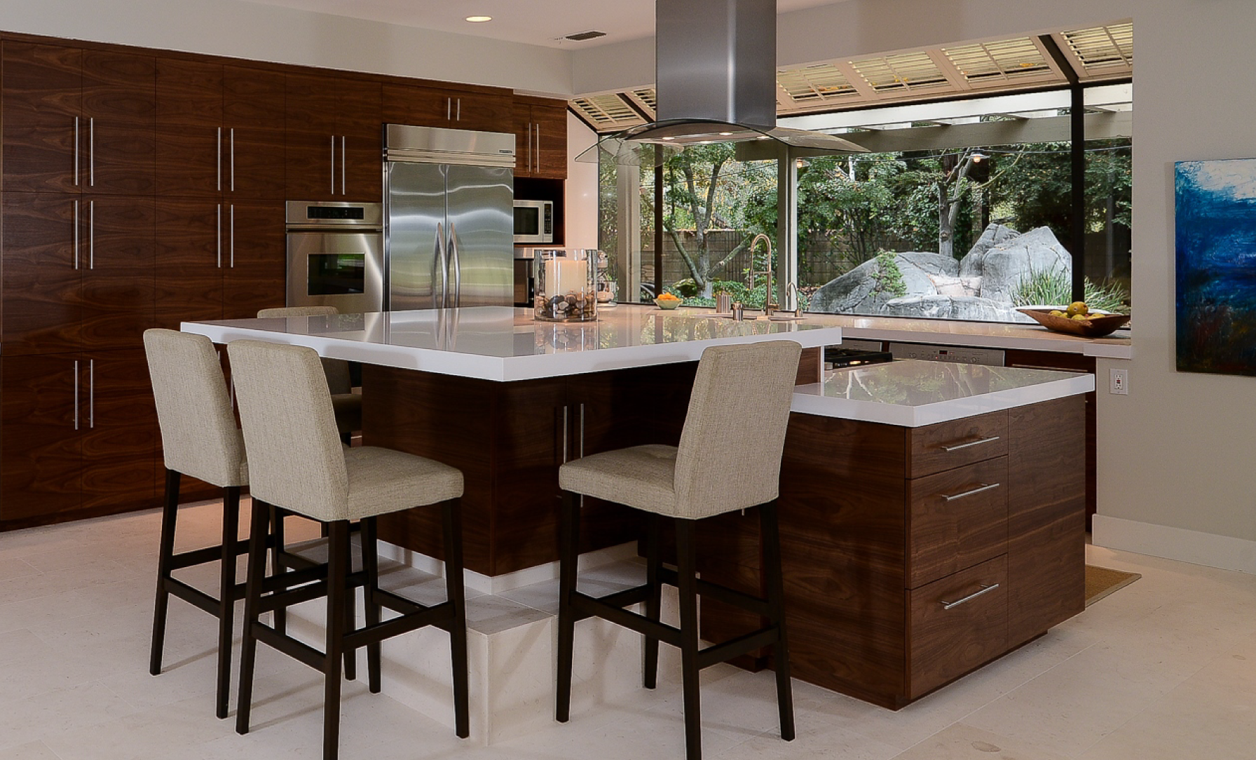 Sleek, contemporary, and styled, this project focused on design for multiple people. With counters of different heights, easily accessible appliances, and smooth surfaces throughout, our clients wanted to be able to live in their home as they aged and welcomed new additions to the family. We chose to incorporate Silestone’s White Zeus as the kitchen’s primary surface because of its durability and beautiful finish.